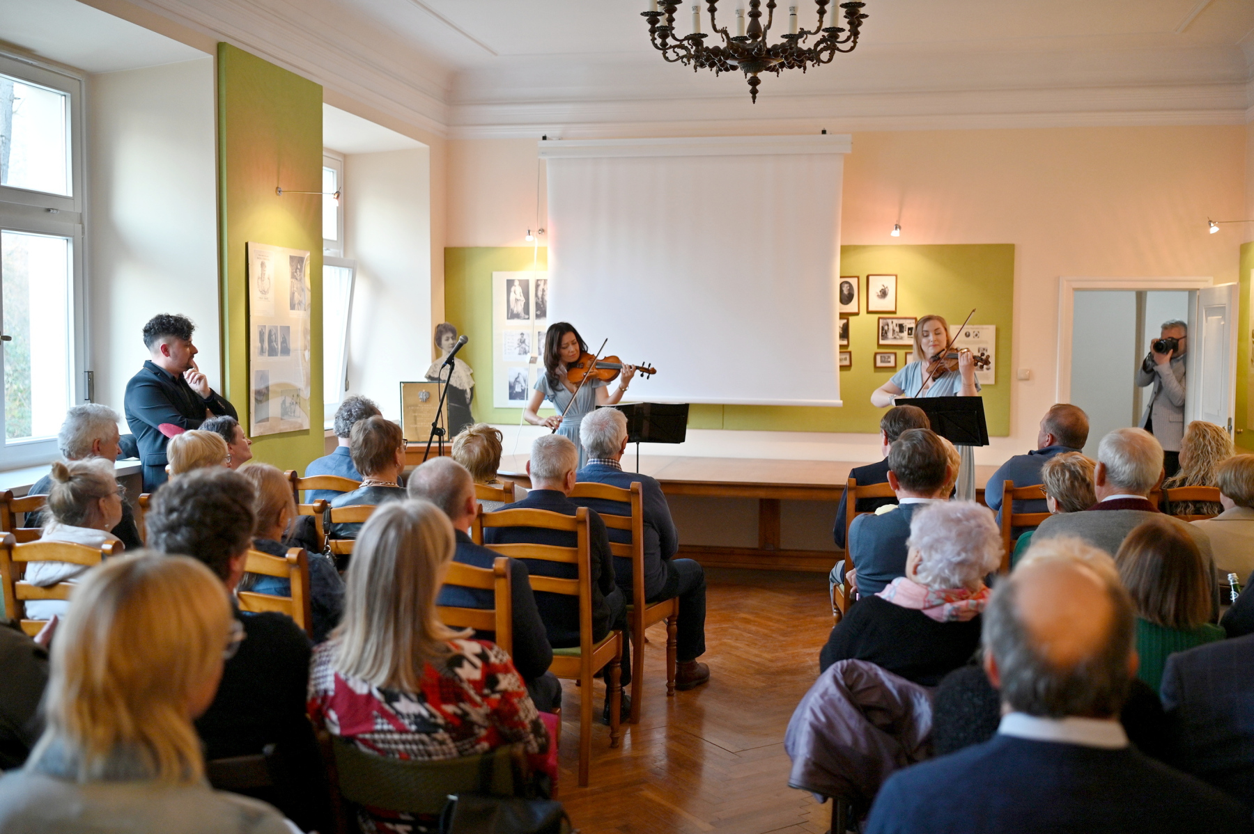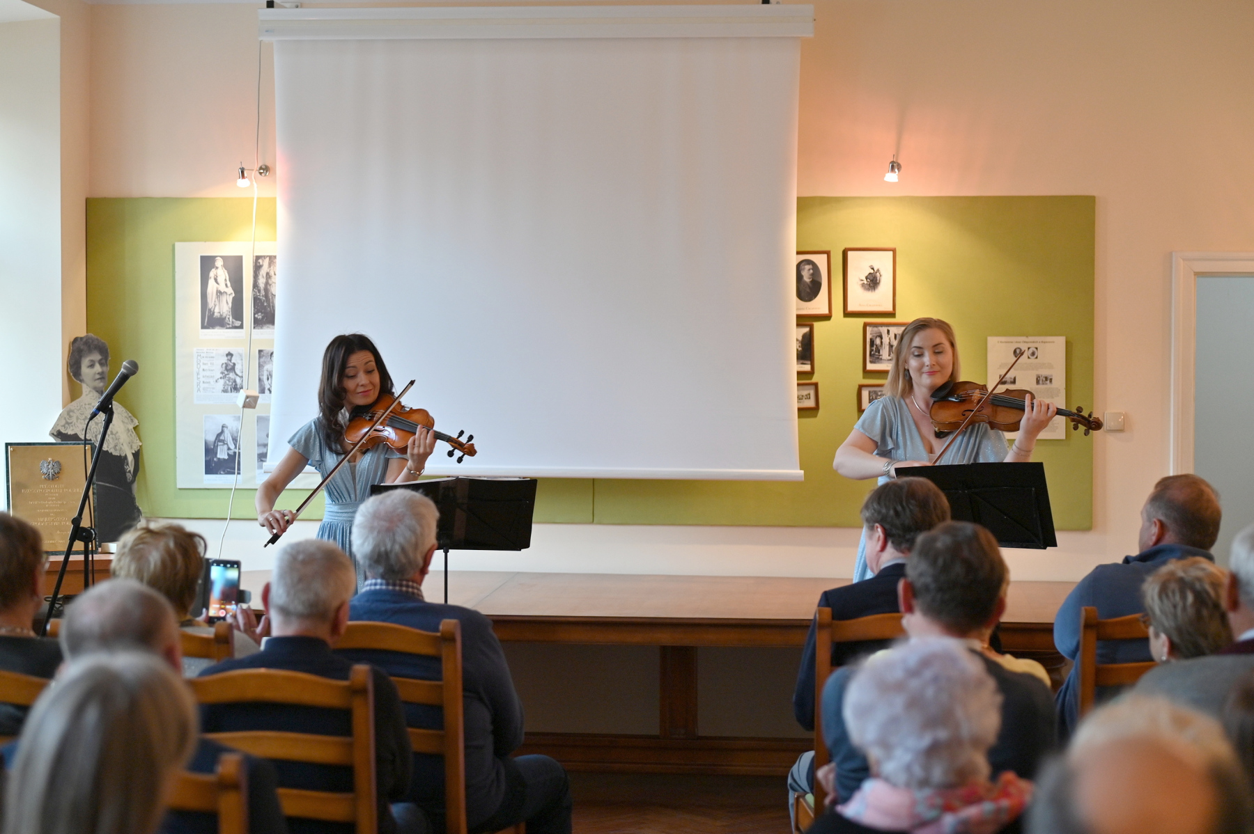 Bezpośrednio po krótkiej prelekcji odbył się koncert smyczkowy Marii Murawy-Fraski i Natalii Janik-Zajmy, które w recitalu zaprezentowały najpiękniejsze utwory klasyczne, ale też muzykę popularną i współczesną. Spotkanie zakończyło się niezwykle miłymi i serdecznymi rozmowami przy kawie i cieście.
